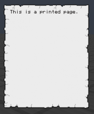 The printed page is an item which is created with the printer. The contents of the page can be viewed by right clicking with it on the hotbar. Two or more can be crafted together with a string to create printed pages, or crafted together with a string and a piece of leather to create a printed book.